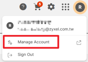 1 Log in to the Web Portal, click the Account icon at the top right corner, select Manage account.