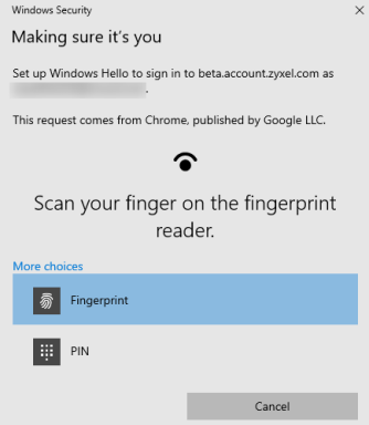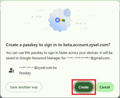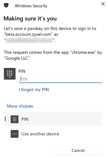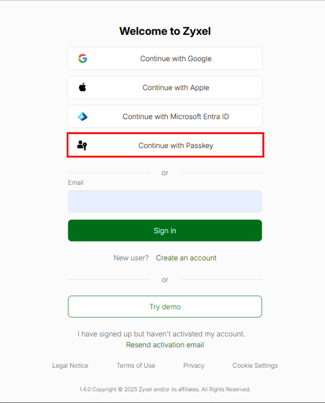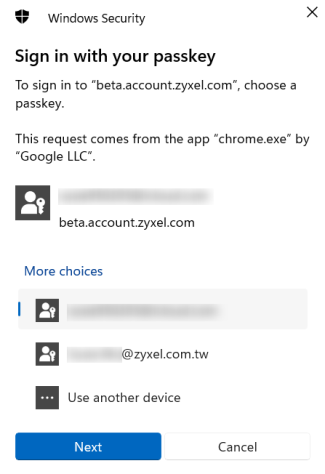 A passkey is a password-less login method that lets you log in using the same way you unlock your device – fingerprint, Face ID, or PIN. You can use passkeys to log in to Zyxel Web Portals such as, Nebula, Circle, SecuReporter, and so on.